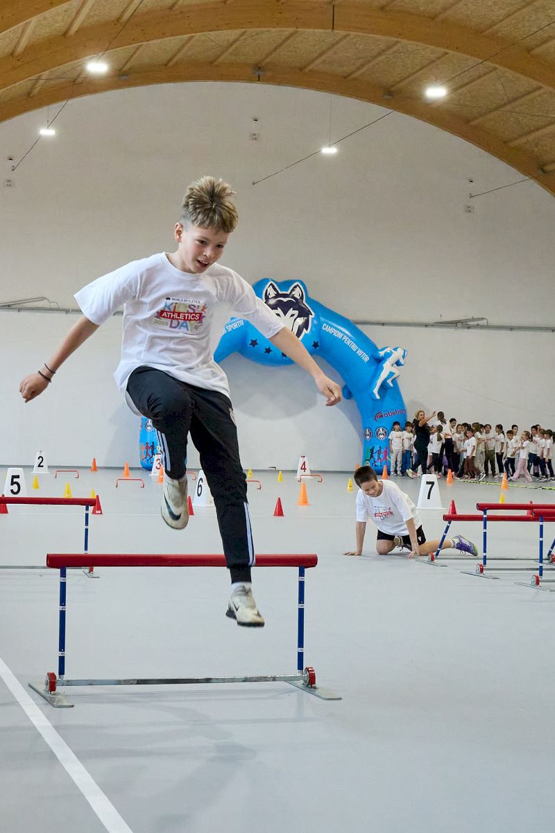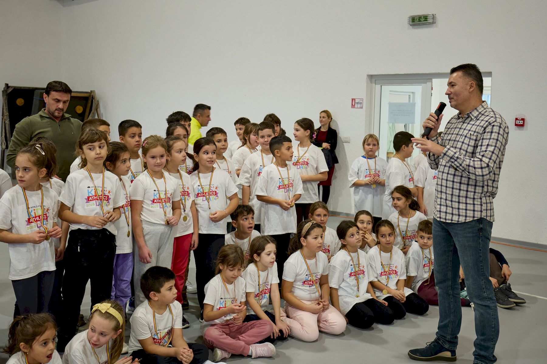 În sala de sport a Liceului Teoretic David Voniga, peste 500 de copii cu vârste între 7 și 12 ani au descoperit bucuria mișcării și a probelor de atletism prin activități interactive, dinamice și pline de entuziasm. Atmosfera a fost una de sărbătoare, cu multă energie, voie bună și zâmbete.