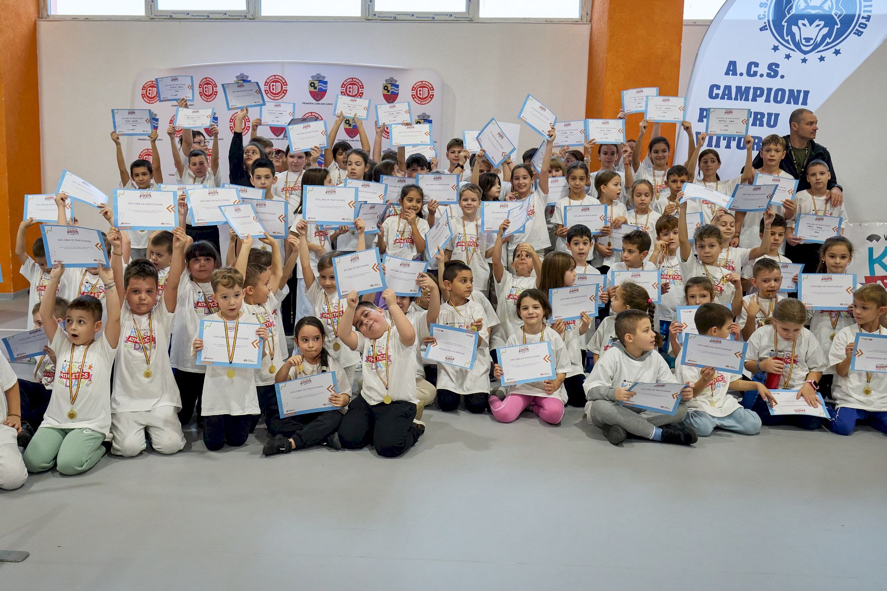 În sala de atletism „Maricica Puică” din Grădinari, aproape 200 de copii au trăit o zi memorabilă, participând cu entuziasm la activități fizice, jocuri dinamice și mici competiții care au transformat sportul într-o adevărată aventură. Atmosfera a fost una prietenoasă, vibrantă și plină de veselie, reafirmând importanța mișcării în dezvoltarea armonioasă a copiilor.