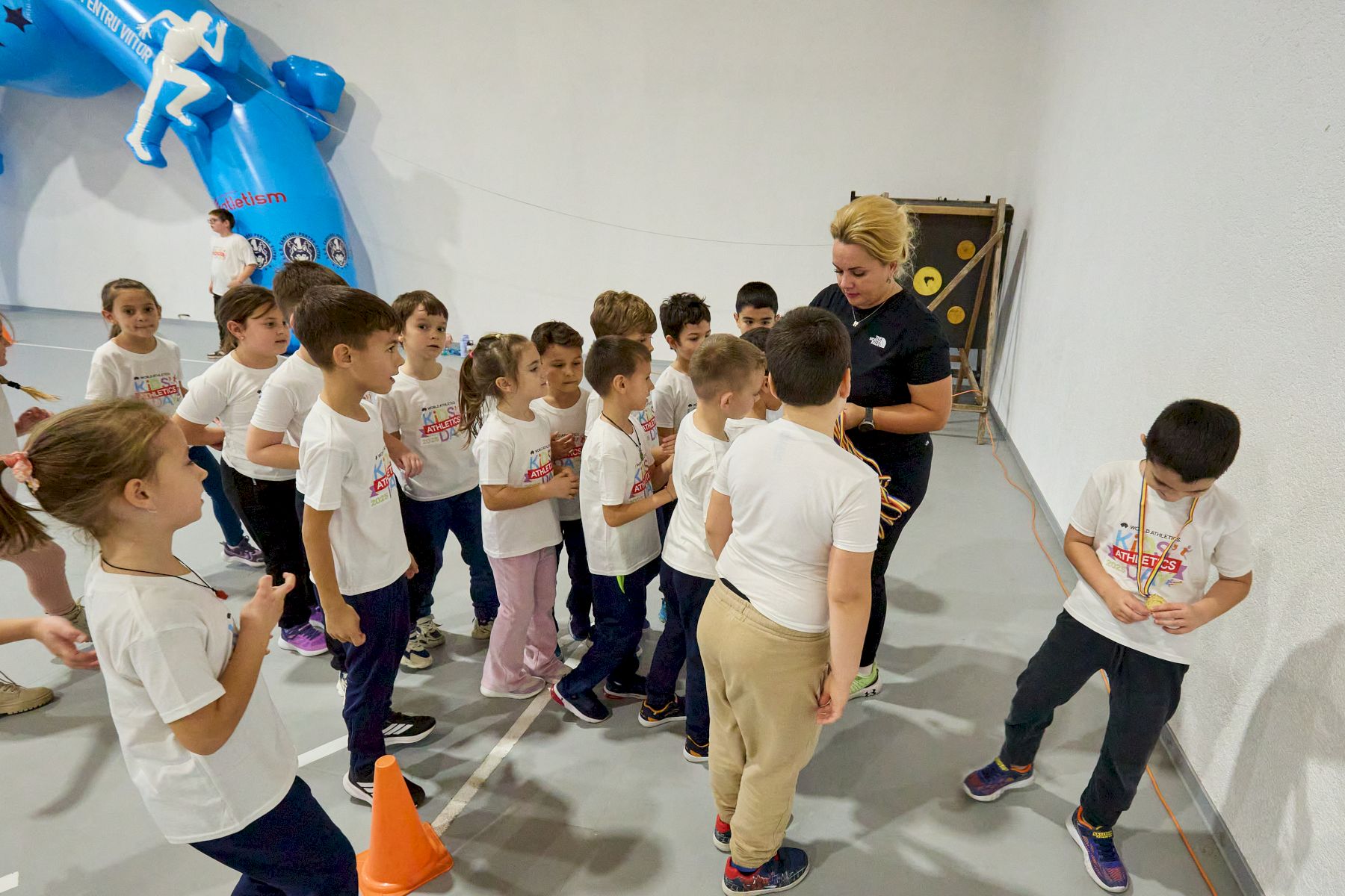 În sala de sport a Liceului Teoretic David Voniga, peste 500 de copii cu vârste între 7 și 12 ani au descoperit bucuria mișcării și a probelor de atletism prin activități interactive, dinamice și pline de entuziasm. Atmosfera a fost una de sărbătoare, cu multă energie, voie bună și zâmbete.