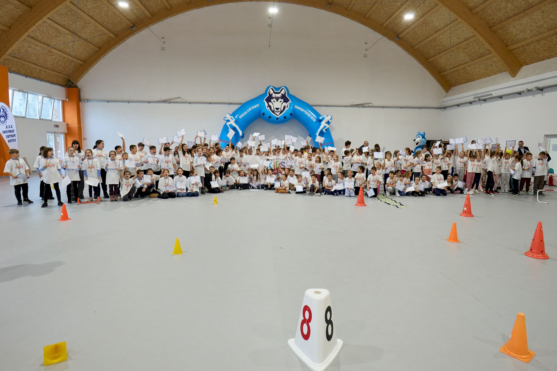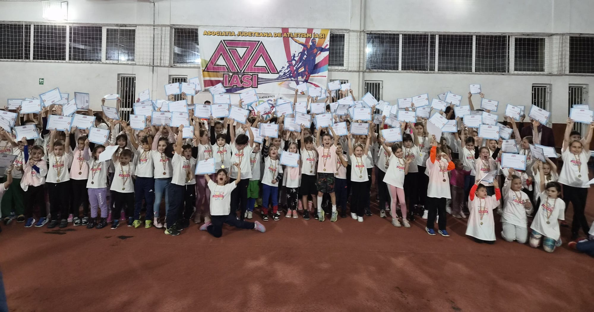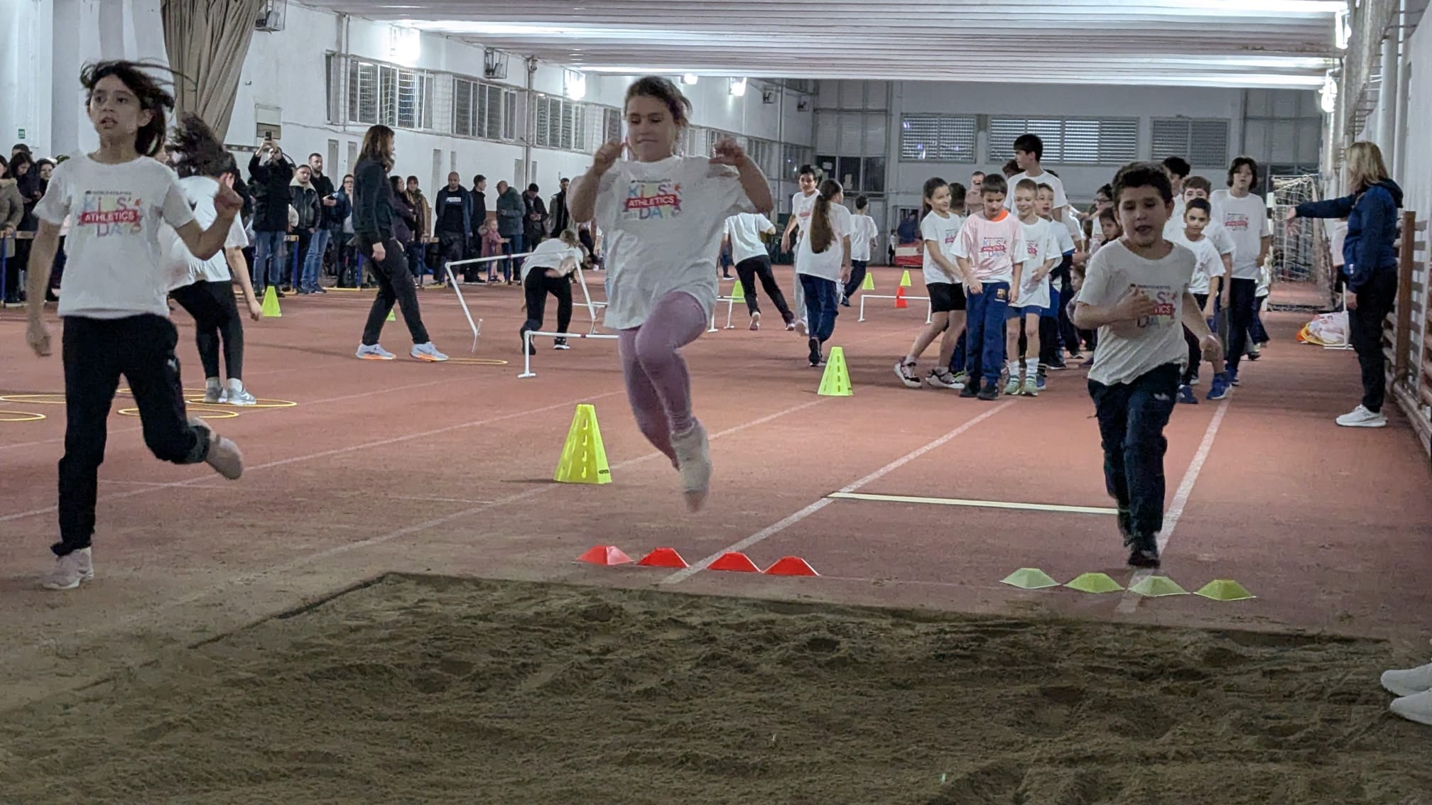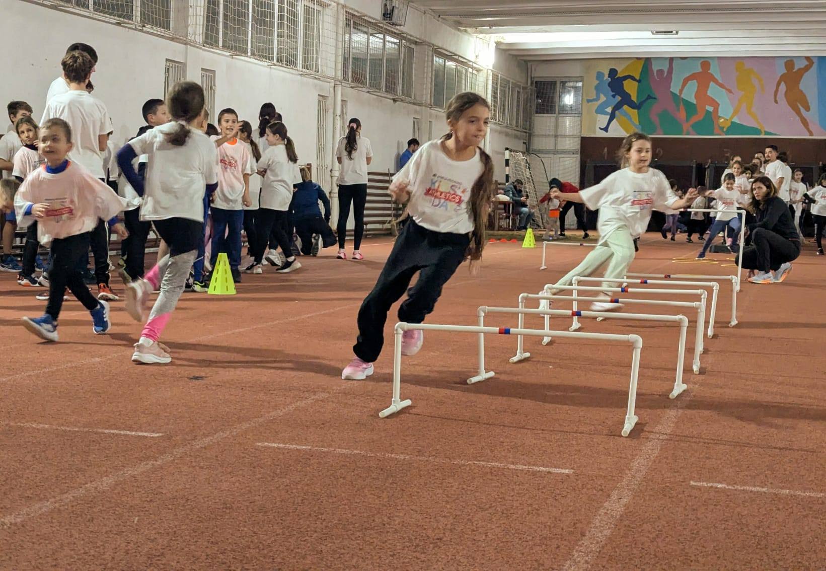 În sala de sport a Liceului Teoretic David Voniga, peste 500 de copii cu vârste între 7 și 12 ani au descoperit bucuria mișcării și a probelor de atletism prin activități interactive, dinamice și pline de entuziasm. Atmosfera a fost una de sărbătoare, cu multă energie, voie bună și zâmbete.